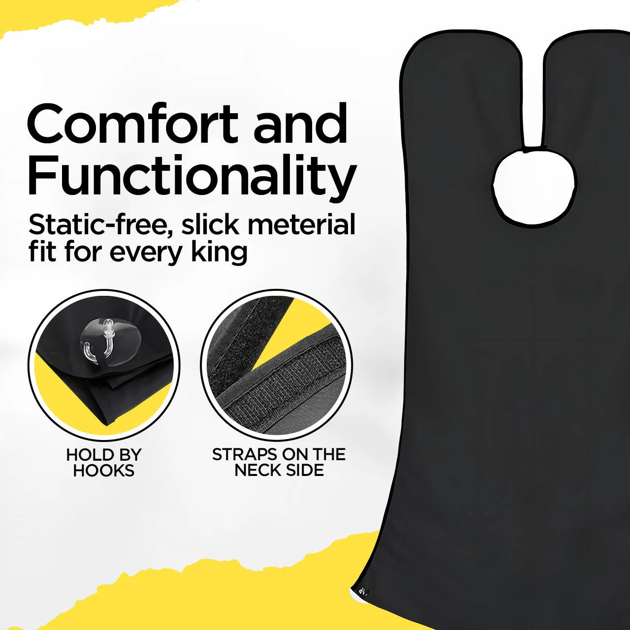 This is the perfect shaving accessory, also called the beard catcher or the apron for shaving. It is the mess-free solution for dry shaving, beard styling, ear & nose hair trimming, or even wet shaving. It comes with two suction cups at the ends that attach to the mirror seamlessly and help you catch the falling hair effectively. It is made of high-fiber, waterproof, non-stick fabric that ensures a mess-free trim every time. Durable, convenient to use, and machine washable, it allows for an effortless, hands-free grooming and shaving station. The adjustable neck strap ensures a comfortable and secure fit for all users. It helps keep your bathroom clean, save valuable time, and enjoy a more efficient grooming routine, all with one essential accessory.
