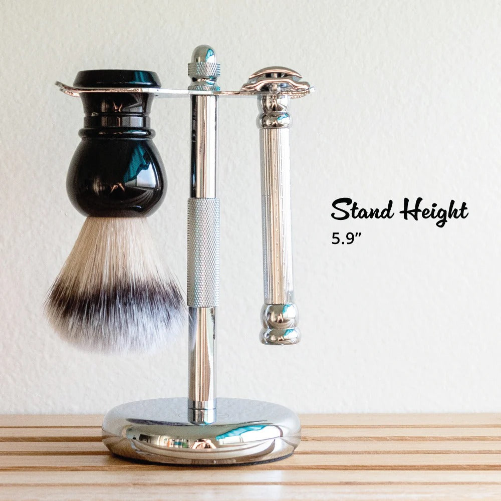 Safety Razor and Brush Stand was designed with functionality in mind. Too often customers were displeased with razor and brush stands that would topple when brushes or razors were added to them, so we weighted the base to make the ultimate sturdy stand. This stand is designed with openings to fit most standard razors and brushes and also includes non-slip knurling on the base for ease of transport. Total Height: 150mm Brush Opening: 29mm Razor Opening: 13mm